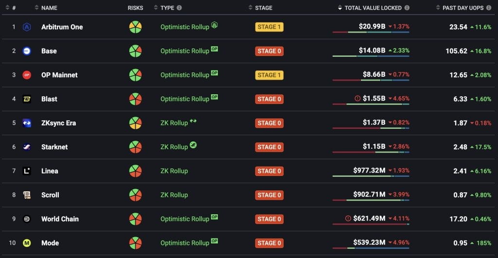 Opracowany przez Matter Labs, ZKsync ma stawić czoła skalowalności i wysokim presjom dotyczącym opłat transakcyjnych w Ethereum, a także konkurencji ze strony rozwiązań warstwy 2, takich jak Arbitrum, Base i Optimism, które obecnie dominują i są warte ponad 80% całkowitej wartości Ethereum zablokowane aktywa.