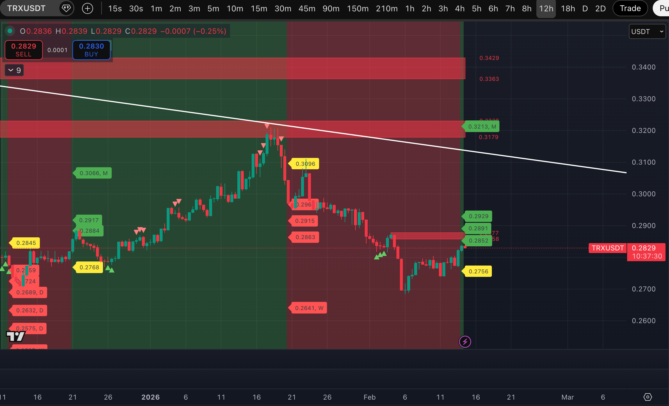 Podstawowe i dodatkowe cele, poziomy potencjalnego złamania, strefy płynności - wszystko na zrzutach ekranu.