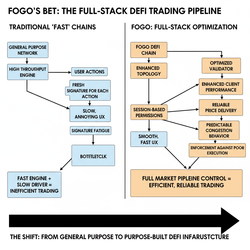 Nawet elementy UX, takie jak uprawnienia oparte na sesji, mają większe znaczenie, niż ludzie zdają sobie sprawę. Jeśli każda akcja wymaga świeżego podpisu, jeśli przepływ jest wolny i irytujący, nie masz tak naprawdę szybkiego systemu. Masz szybki silnik z wolnym kierowcą. Dla zachowań o wysokiej częstotliwości, nawet dla normalnych aktywnych traderów, zmęczenie podpisem to prawdziwe wąskie gardło. Traktowanie tego przez Fogo jako część stosu jest spójne z wszystkim innym.