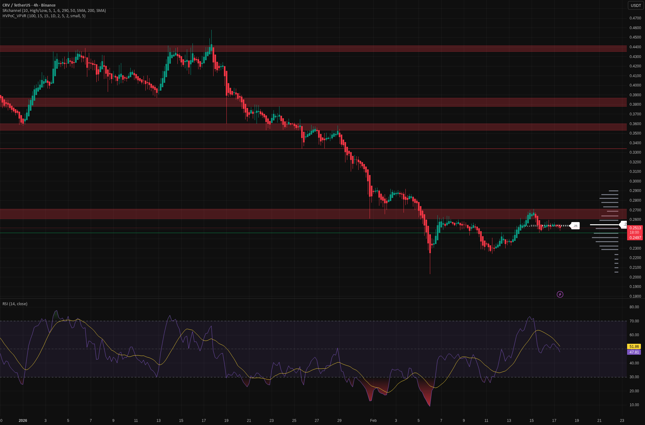 Mój podstawowy scenariusz ✅ krótki z tego przedziału 0.25-0.27 z celami na 0.235, a następnie 0.22, unieważnienie przy pewnym zamknięciu 4H powyżej 0.28. Jeśli cena przebije się powyżej 0.28 z RSI wracającym powyżej 60, przełączę się i będę polować na długie pozycje w kierunku 0.30-0.32 zamiast. Osobiście czekam na skok stop-hunt do 0.26-0.27, aby rozbudować pozycję - mogę się mylić, ale to wciąż wygląda na dystrybucję, a nie akumulację.