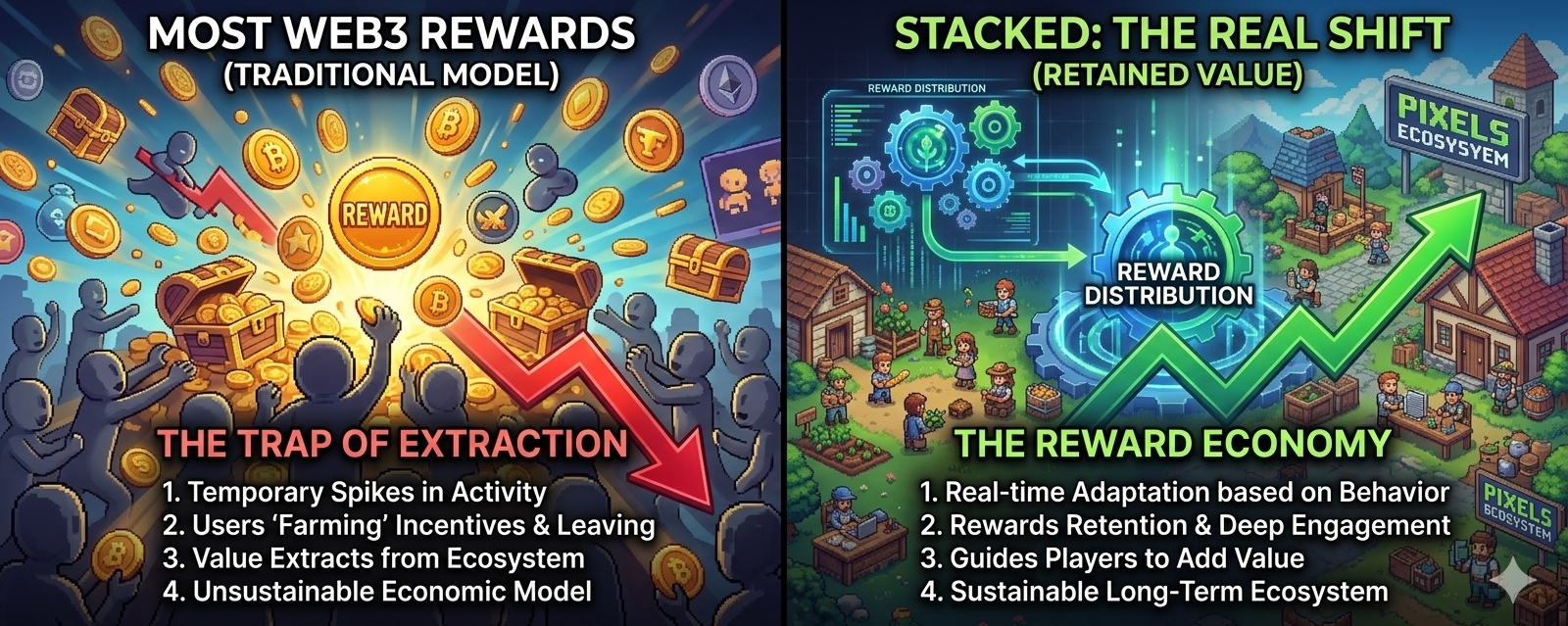 This is exactly why Stacked caught my attention in a different way. At first, it’s easy to assume it’s just another tool designed to distribute rewards more efficiently. But the more I looked into it, the more it felt like that’s not really the point. It’s not just about sending rewards out — it’s about what those rewards actually do once they’re in the hands of players. That shift in perspective is subtle, but it changes everything. Instead of asking how to give rewards, it’s asking whether those rewards are creating the right kind of behavior inside the ecosystem. And honestly, that’s a much harder and more important problem to solve.
