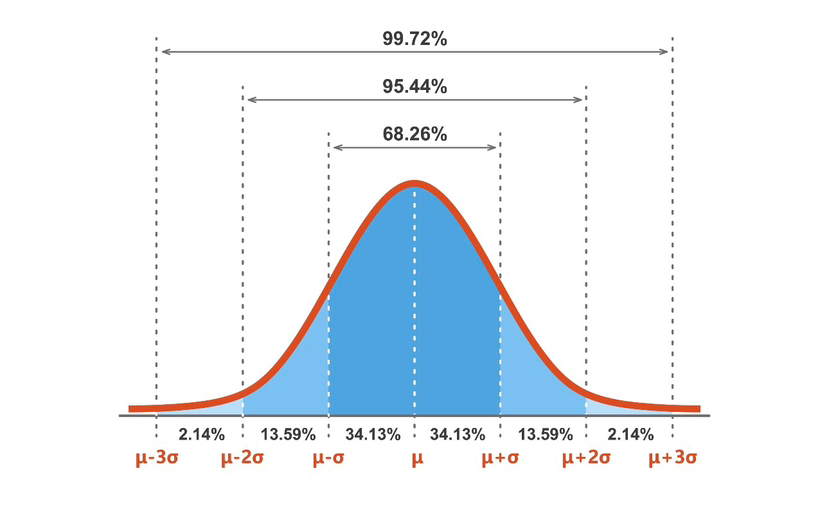 Більшість цінових коливань вкладаються в межі нормального розподілу. Згідно з правилом "трьох сигм":