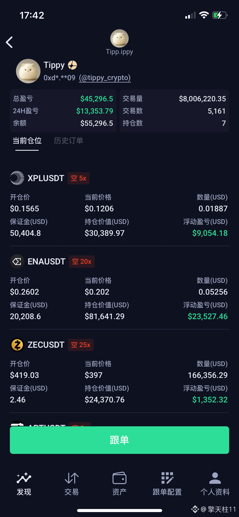 Tippy 毛球头像,不像传统交易员那种K 线头像,反而是可爱到不像会赚钱的那种反差感,越反差越容易被转发。