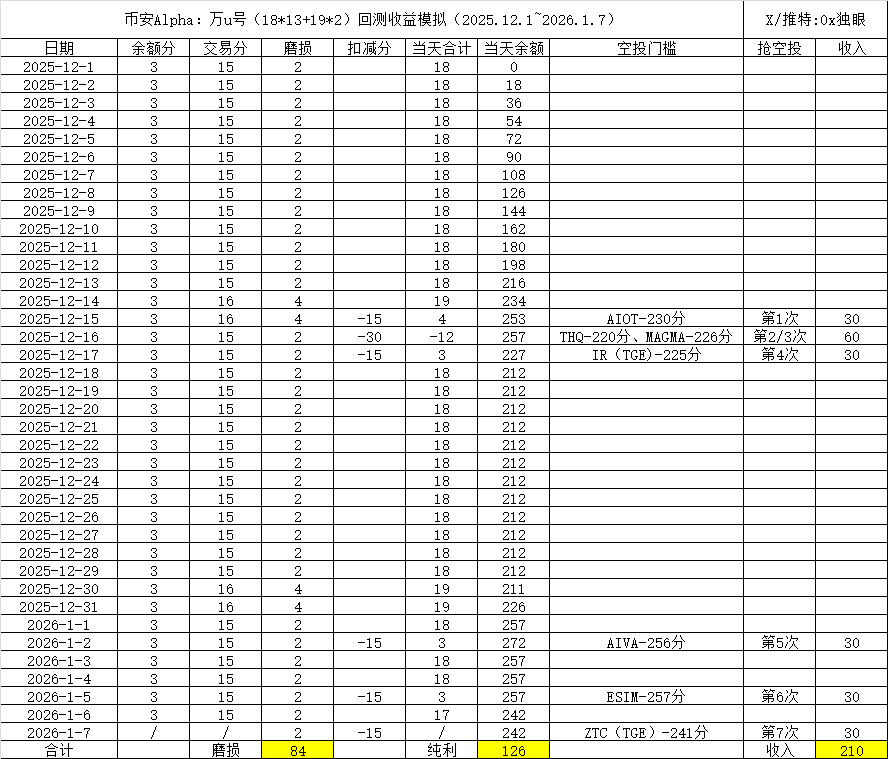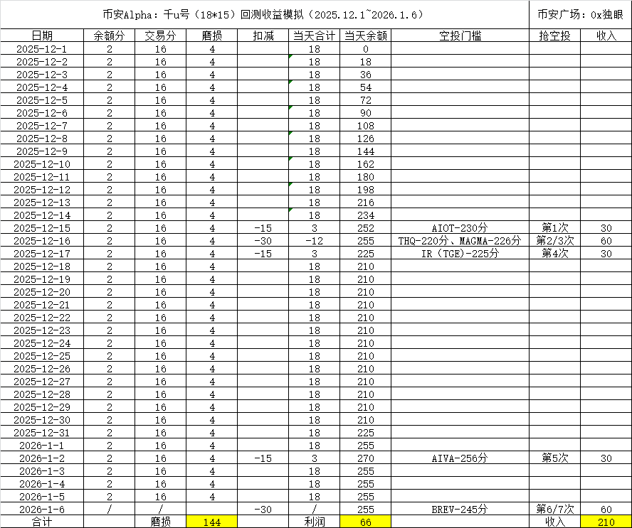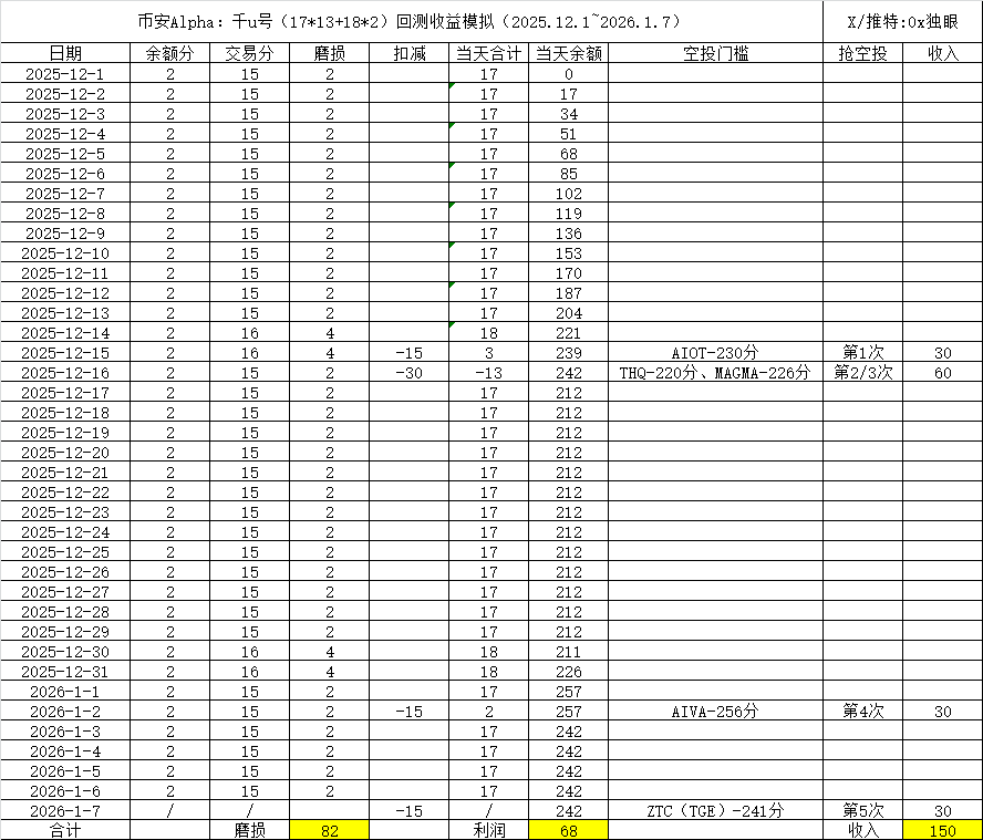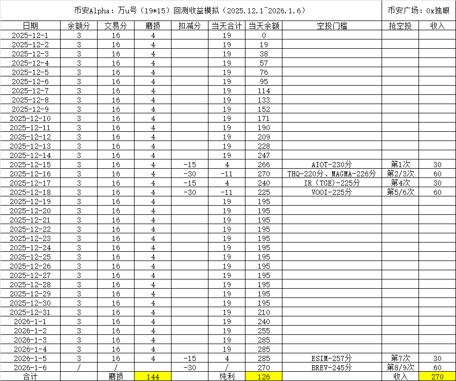 Odnośnie oceny zysków, napisałem już artykułW 2026 roku, próg i zyski dla pierwszego 15-dniowego okresu Binance Alpha