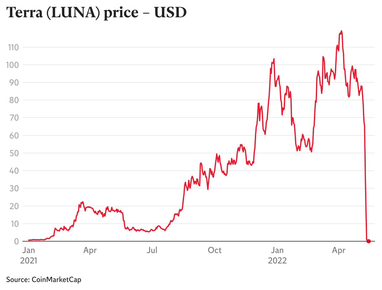 $LUNA (Terra) $LUNC , top 5-10 w maju 2021 → Całkowity krach w 2022 → Wersja LUNA 2.0 istnieje, ale jest warta ułamków centa w porównaniu do starego ATH (~$119 → prawie zero efektywne dla oryginalnych posiadaczy, strata ~100 %). Ikoniczny krach LUNA: