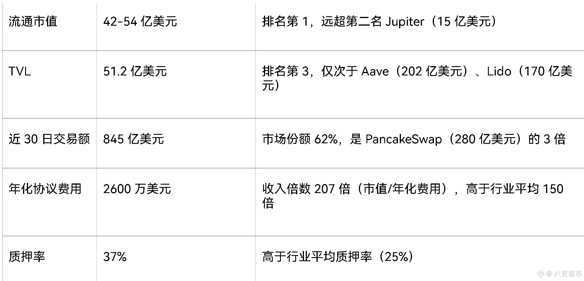 - 多链竞争压力:Solana 生态 Jupiter(凭借极速交易)、BSC 生态 PancakeSwap(低费率+游戏化)分流部分用户,多链部署导致流动性分散。