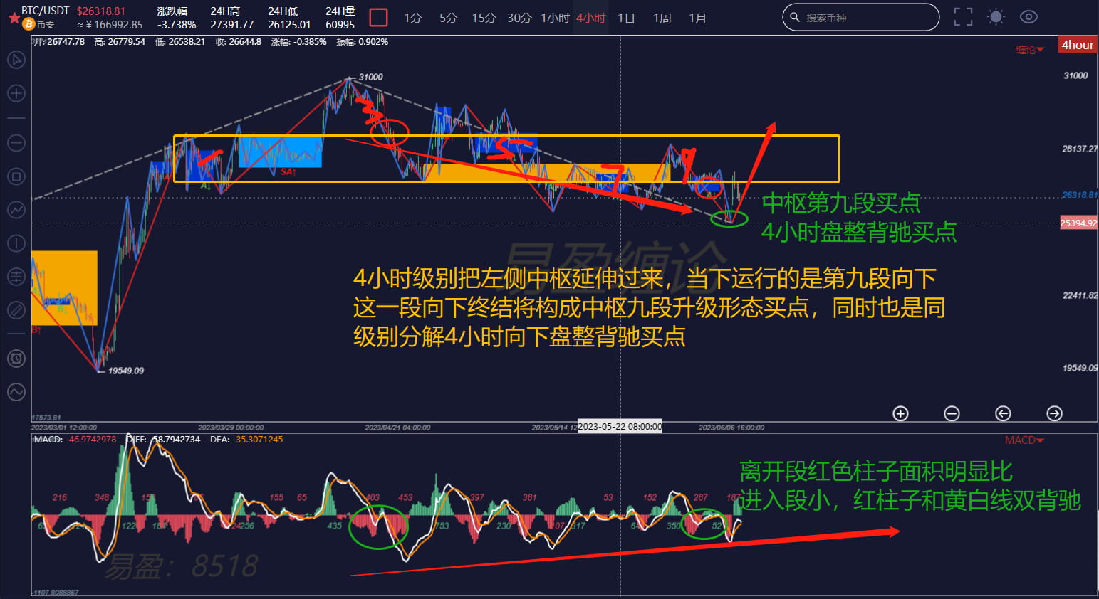 而4小时级别推演图更加经典,当时已经做出4小时级别中枢九段升级暴涨形态,只是没预计到力度这么强,下面这张就是当时的推演图: