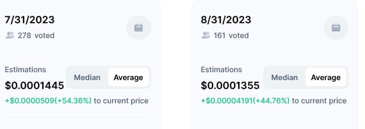 Biorąc pod uwagę rosnące zainteresowanie, Finbold zbadał możliwą trajektorię cenową dla LUNC, korzystając z funkcji szacowania cen kryptowalut CoinMarketCap. Dane z dnia 16 lipca wskazują, że społeczność Terra Classic na platformie, z 278 głosami, prognozuje średnią cenę transakcyjną na poziomie 0,0001445 USD dla LUNC do 31 lipca.