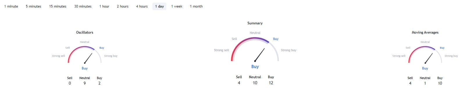 Tymczasem analiza uzyskana z TradingView wskazuje na przeważająco byczy sentyment wokół LUNC. Podsumowanie wskaźników pokazuje ocenę sentymentu kupna na poziomie 12, przy średnich kroczących wynoszących 10. Oscylatory również zalecają ocenę sentymentu kupna na poziomie 2.