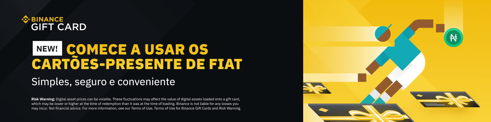 Com o Cartão-Presente Binance, você pode enviar fiat diretamente do seu celular. Basta entrar em sua conta da Binance e criar seu primeiro Cartão-Presente de Fiat hoje mesmo!