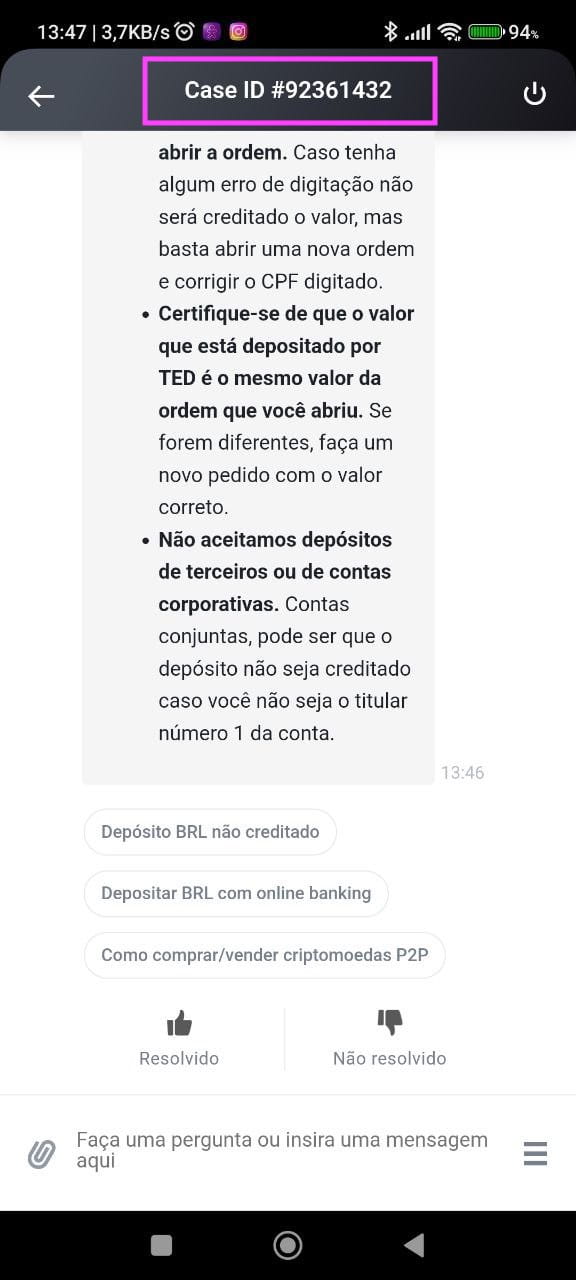 Toda vez que você abre um chamado na Binance e solicita contato com um atendente humano, esse humano irá pedir o número do case ID. Ou, em português, o número de identificação do seu caso / chamado.