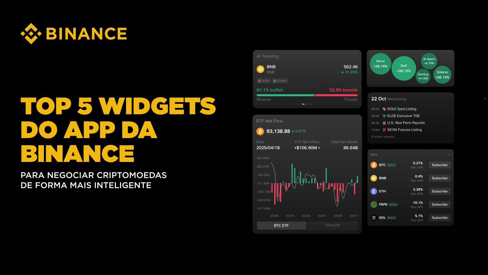 No mercado de criptomoedas, ter acesso imediato a dados claros e relevantes pode determinar seu sucesso. A biblioteca versátil de widgets do app Binance traz informações essenciais – incluindo mudanças de sentimento social, tendências setoriais, fluxos institucionais e eventos futuros – direto para você. Integrados de forma transparente e facilmente personalizáveis, esses recursos ajudam na antecipação de movimentações do mercado e na otimização da gestão do portfólio. Continue lendo para conhecer os cinco principais widgets do app Binance que estão redefinindo o envolvimento dos investidores com cripto.