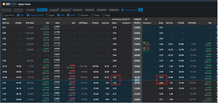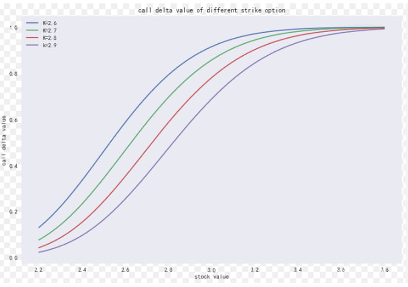 学过期权希腊字母的小伙伴都知道,delta是期权premium对价格一阶导数。且delta有一些明显特性,以本月14日到期期权为例,平值期权的Delta绝对值约为0.5,由于delta的方向和概率属性所以很多机构投资人会刻意将投资组合调整为delta中性。