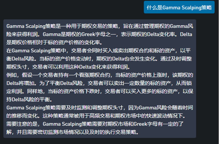 期权的老玩家经常会听到一些机构玩Gamma scalping策略而不明觉厉,我也用SP自带的chat GPT查了一下策略定义,同时下文也会结合理论和实际例子试着说明Gamma scalping策略及其适用的场景。