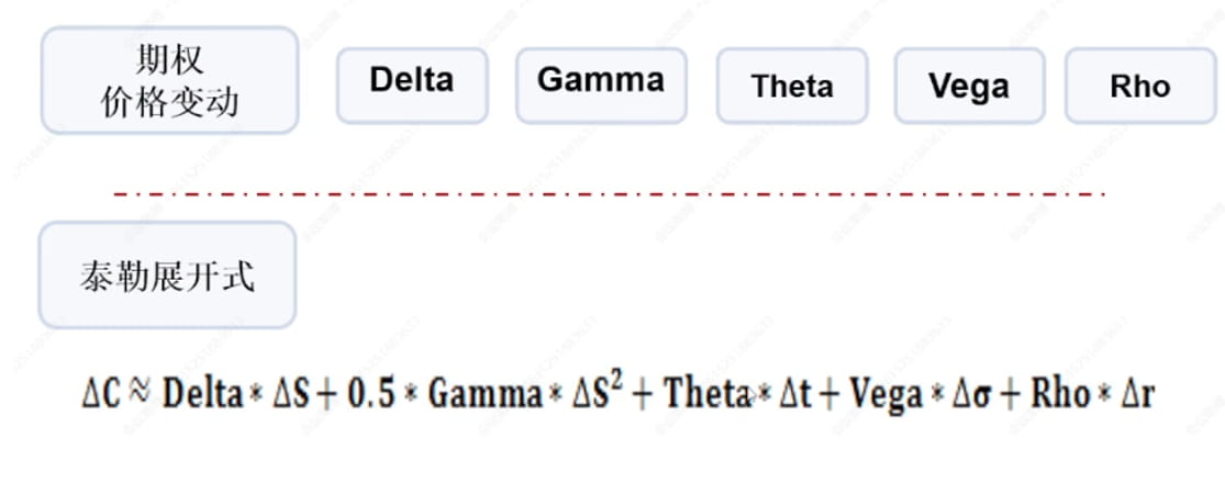 仔细观察上图的泰勒展开式可以发现,利率rho中短期是不变的,第5项等于0,IV短期假定持平则第4项等于0,由于做了delta中性对冲,那么第1项也为0。核心就要看价格变动、Gamma和theta决定了整体组合的pnl,如果是买入策略,则需观察Gamma收益是否能超过theta的损失。