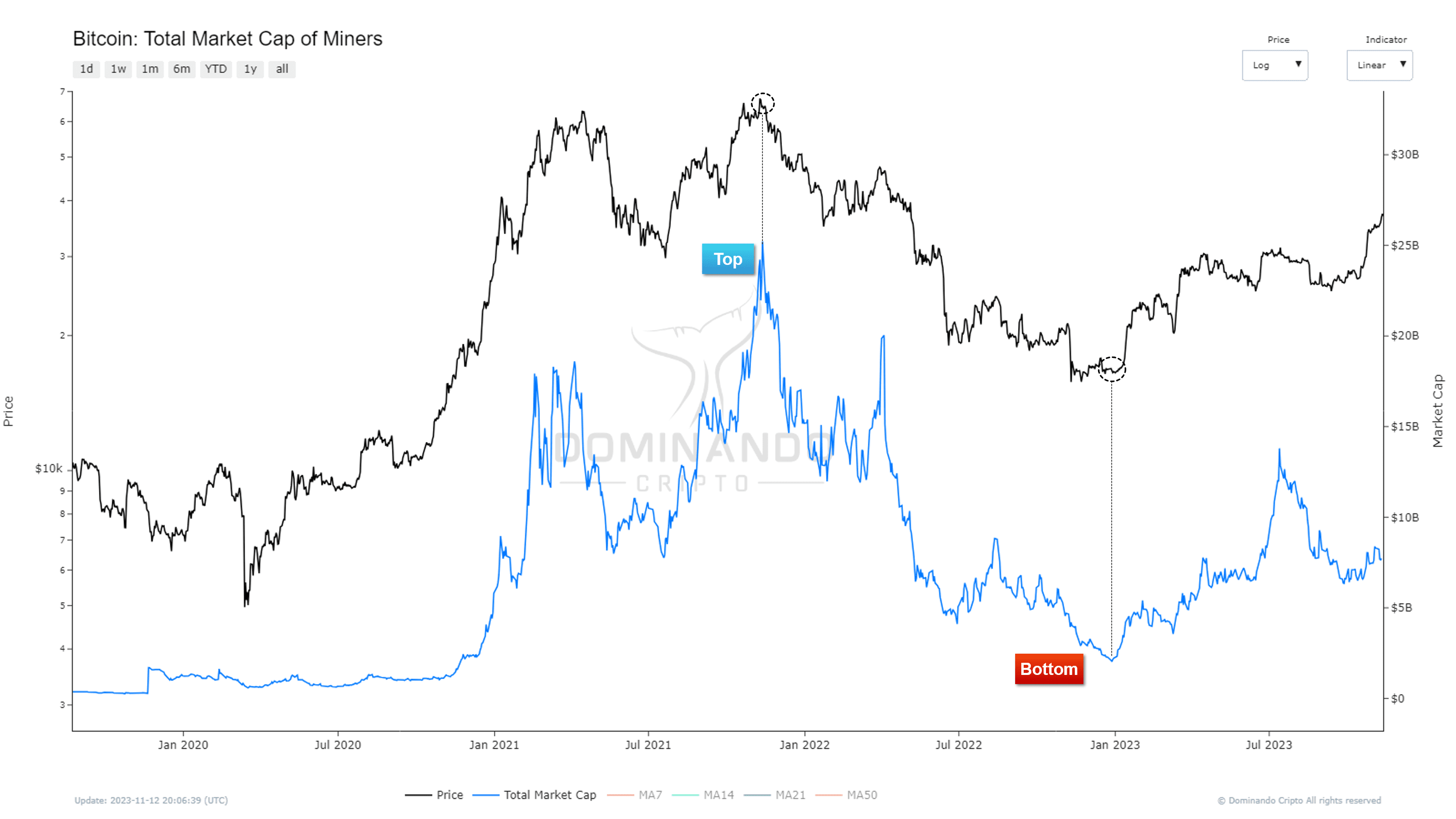 Looking at the Miners' Index (Average), which takes an average for all companies, we observe that interest in the relationship between Bitcoin and miners somewhat diminished in 2021, followed by a Bear market cycle in miners and consequently, in Bitcoin.