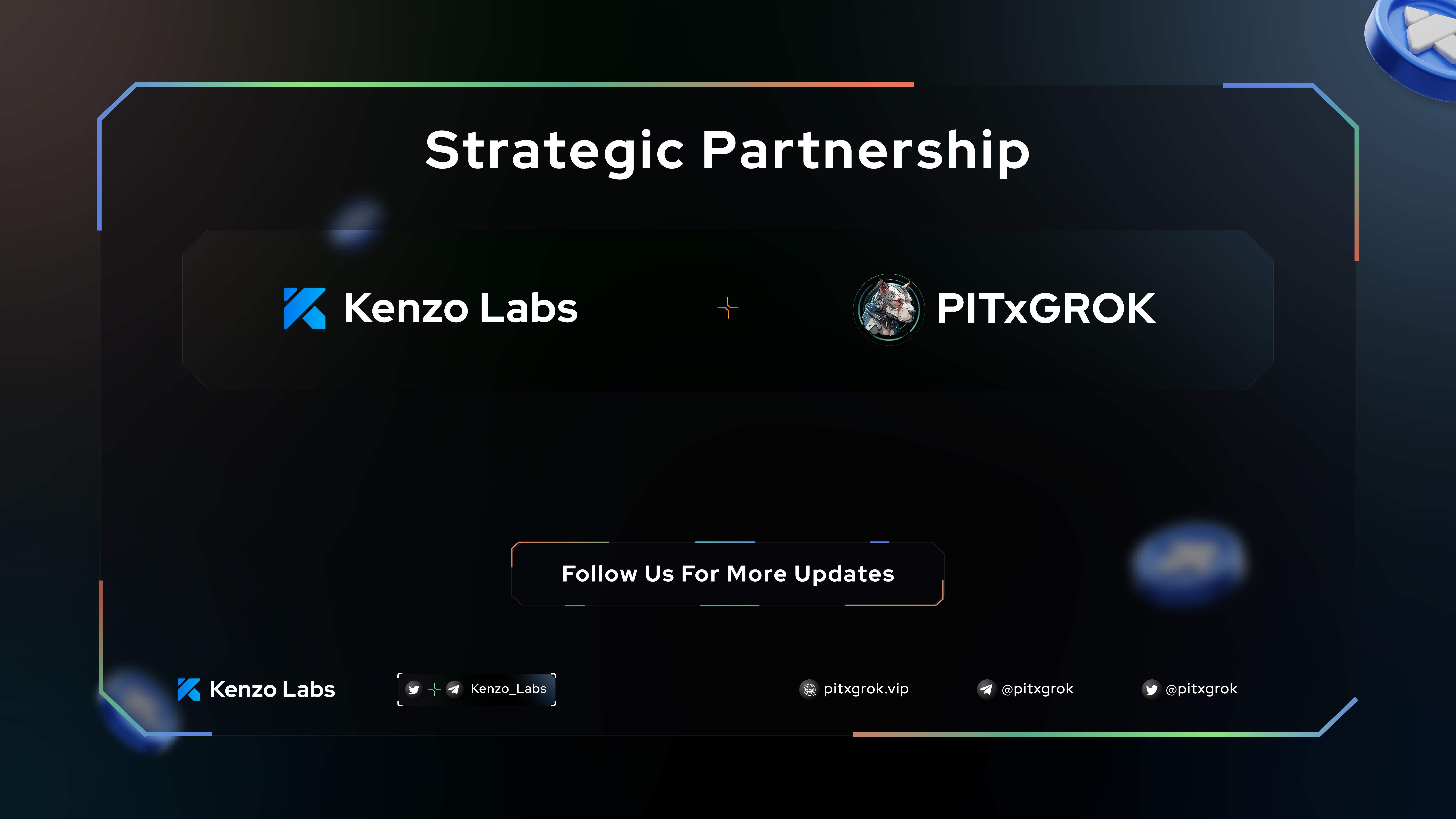 Marcando uma das alianças mais significativas do projeto até o momento. Os esforços conjuntos dessas duas equipes estão prontos para não apenas construir, mas também promover o crescimento da comunidade do PITxGROK. A Kenzo Labs, uma renomada agência de marketing, se comprometeu a implementar estratégias eficazes para elevar a presença de mercado do PITxGROK, aproveitando seu sucesso em atingir um impressionante ROI de 70x para o Projeto BabyBonk