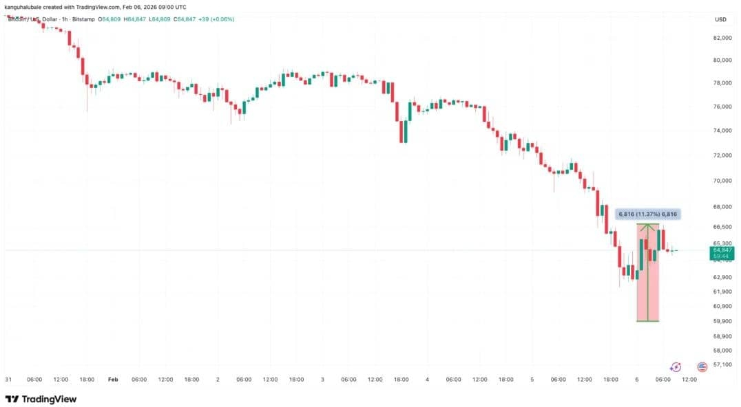 O Bitcoin acabou de quebrar abaixo de $65,500. De um pico no final de 2025 perto de $126,000 até a queda de hoje abaixo de $66K, 3% desaparecidos em 24 horas. As liquidações estão aumentando, o medo voltou.