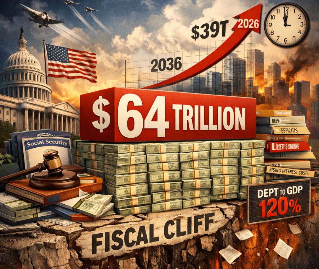O caminho projetado para $64 Trilhões em dívida nacional reflete não apenas estimativas de longo prazo — mas uma trajetória fiscal acelerada onde as obrigações podem começar a superar a capacidade da economia de sustentá-las.