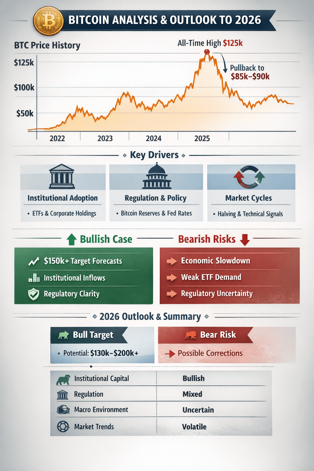 Muitas previsões institucionais apontam para o BTC na faixa de $130 mil a $200 mil+ até o final de 2026, impulsionadas pela adoção estrutural e regulatória. �