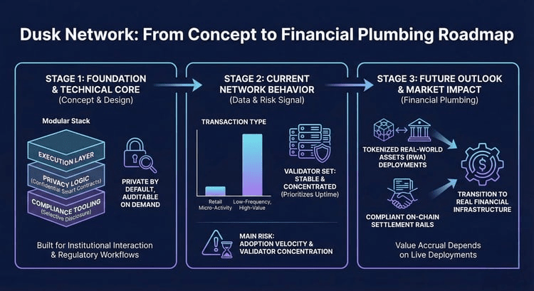 O foco central da Dusk continua sendo a habilitação de aplicações financeiras de grau institucional, DeFi em conformidade e RWAs tokenizados. Suas ofertas incluem contratos inteligentes confidenciais, o padrão XSC para tokens de segurança habilitados para privacidade, registros digitais de ações e votação proxy em cadeia - todos projetados para equilibrar privacidade com auditabilidade regulatória. Esses recursos tornam a Dusk bem adequada para instituições financeiras tradicionais que buscam aproveitar a tecnologia blockchain enquanto aderem a padrões de conformidade globais.@Dusk