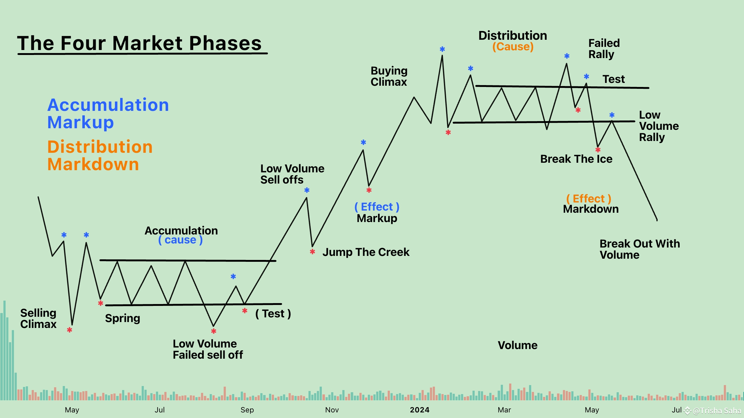 La fel ca piețele tradiționale, piața cripto urmează un ciclu previzibil în patru faze: