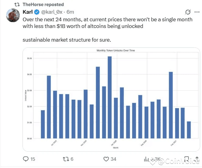 在后牛市环境中,Token溢价的崩塌,Token在归属计划生效后实现高估值变得越来越困难。