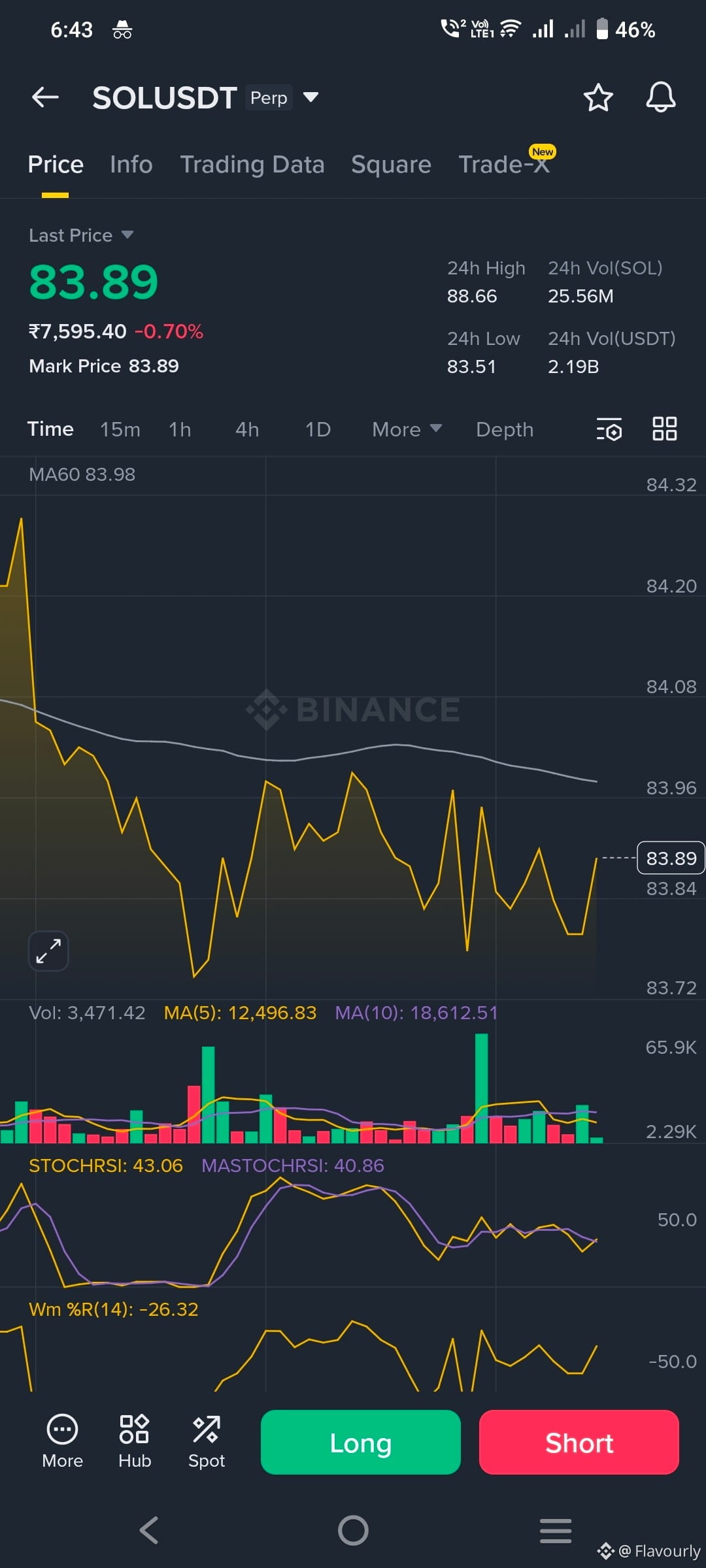 Right now price sits near $83.89, just below the MA60 on lower timeframe (~$83.98). That tells us: