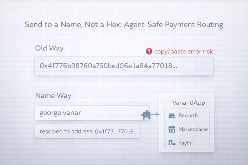 The marketing aside, the implication of infrastructure is high, once you are matching agents and payments, you desire identity that is simple to retrieve, difficult to imitate, and easy to counterfeit. Names help humans. They also contribute to the safe routing of value by the agents.