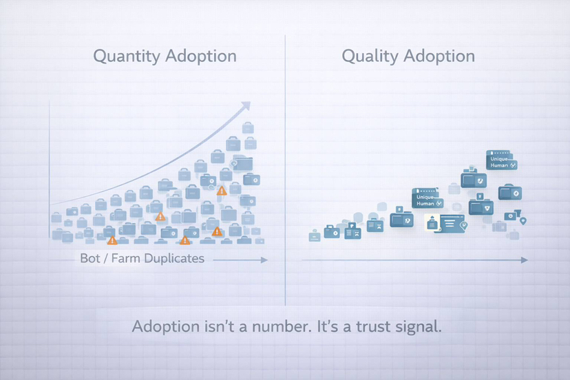 That is the silent issue of Web3 nowadays. As the adoption increases, you do not merely have more users but more fake users. Airdrop farms. Referral abuse. Marketplace wash activity. "One person, fifty wallets." And once the AI agents come into the picture, the attack surface is again widened: bots that appear to be agents, agents that become deceived, and bots that can be used in large numbers.