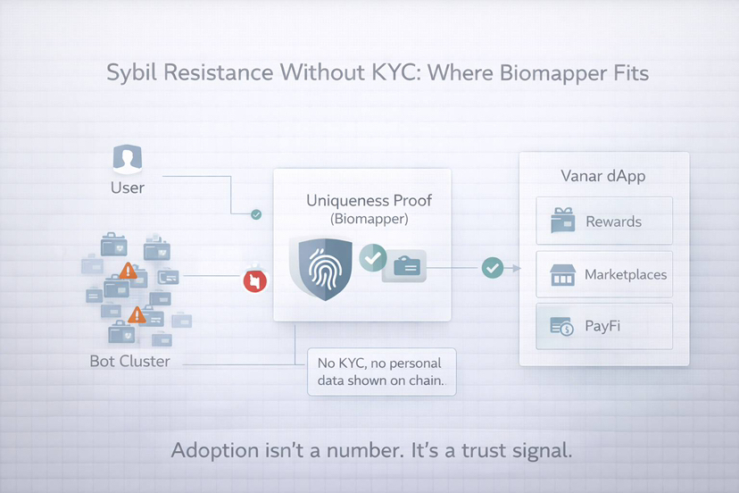 The use of Humanode Biomapper c1 SDK on Vanar is one of the most tangible ones I have been exposed to. Humanode defines Biomapper as a privacy-saving, biometric-based Sybil-resistance mechanism that can be embedded into dApps--they are supposed to ensure that a user is a unique human being, and no KYC is required.
