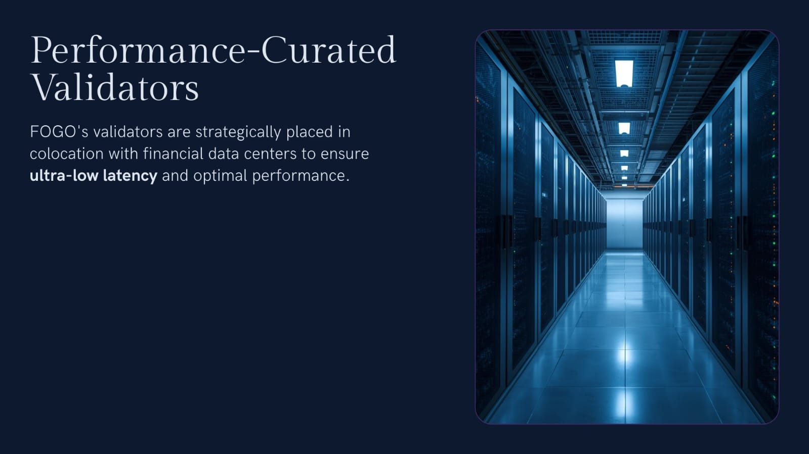 The validator set of FOGO is performance-curated and deployed colocally with the high-speed data centres around major financial centres - the same approach as the exchange matching engines. You do not receive 40ms blocks with validators distributed in a garage basement in Wisconsin.