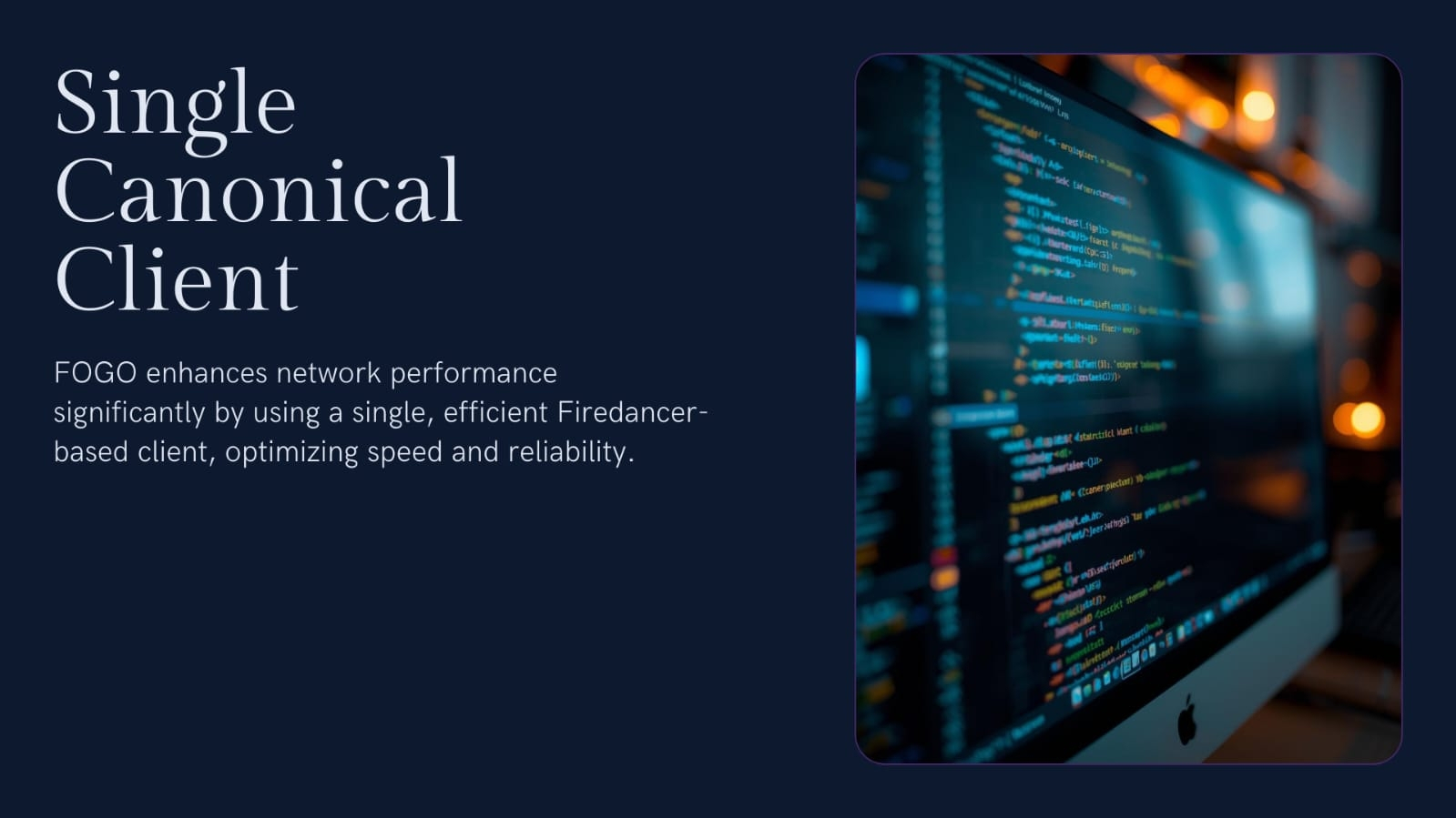 In contrast to Solana that allows having several validator clients, FOGO operates a single canonical Firedancer-based client. No other bottlenecks of weaker implementations - the entire network operates at the maximum speed, invariably.
