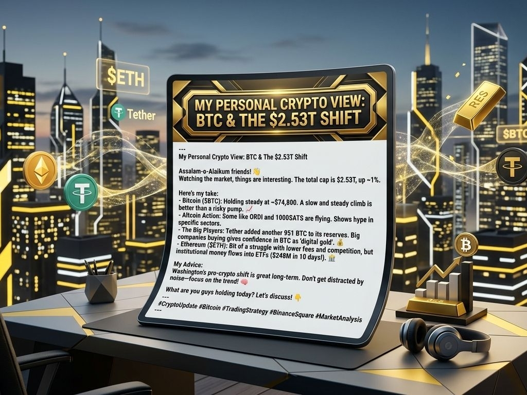 Bitcoin ($BTC): It's holding steady around $74,800. It has been moving between $73k and $75k in the last 24 hours. A slow and steady climb is always better than a risky pump. 📈