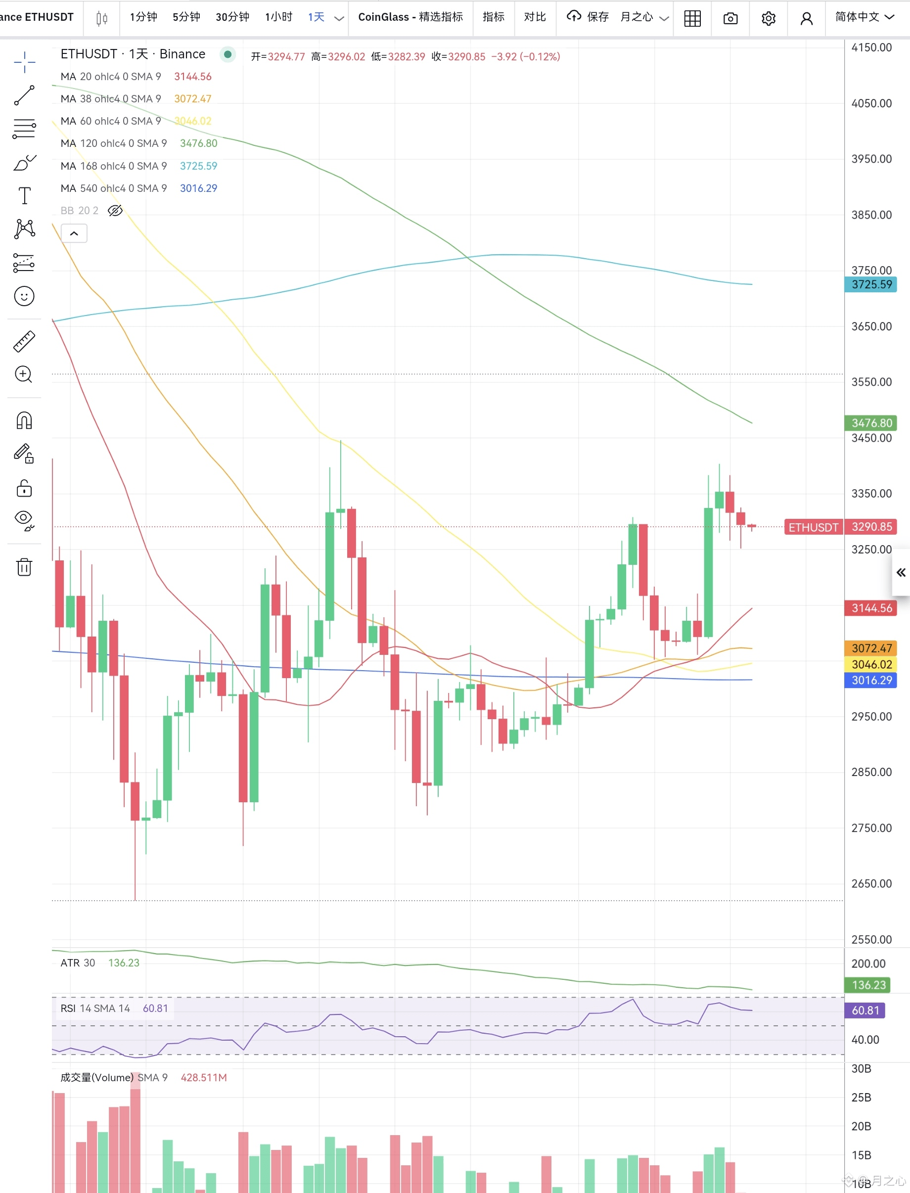 ETH在3290附近磨了这么久也是佩服,这种行情最容易亏钱,因为手一痒就想操作,一操作就被打脸,昨晚看楼下两只🐱能在一个老鼠洞口趴半天,这份定力值得我们学学。