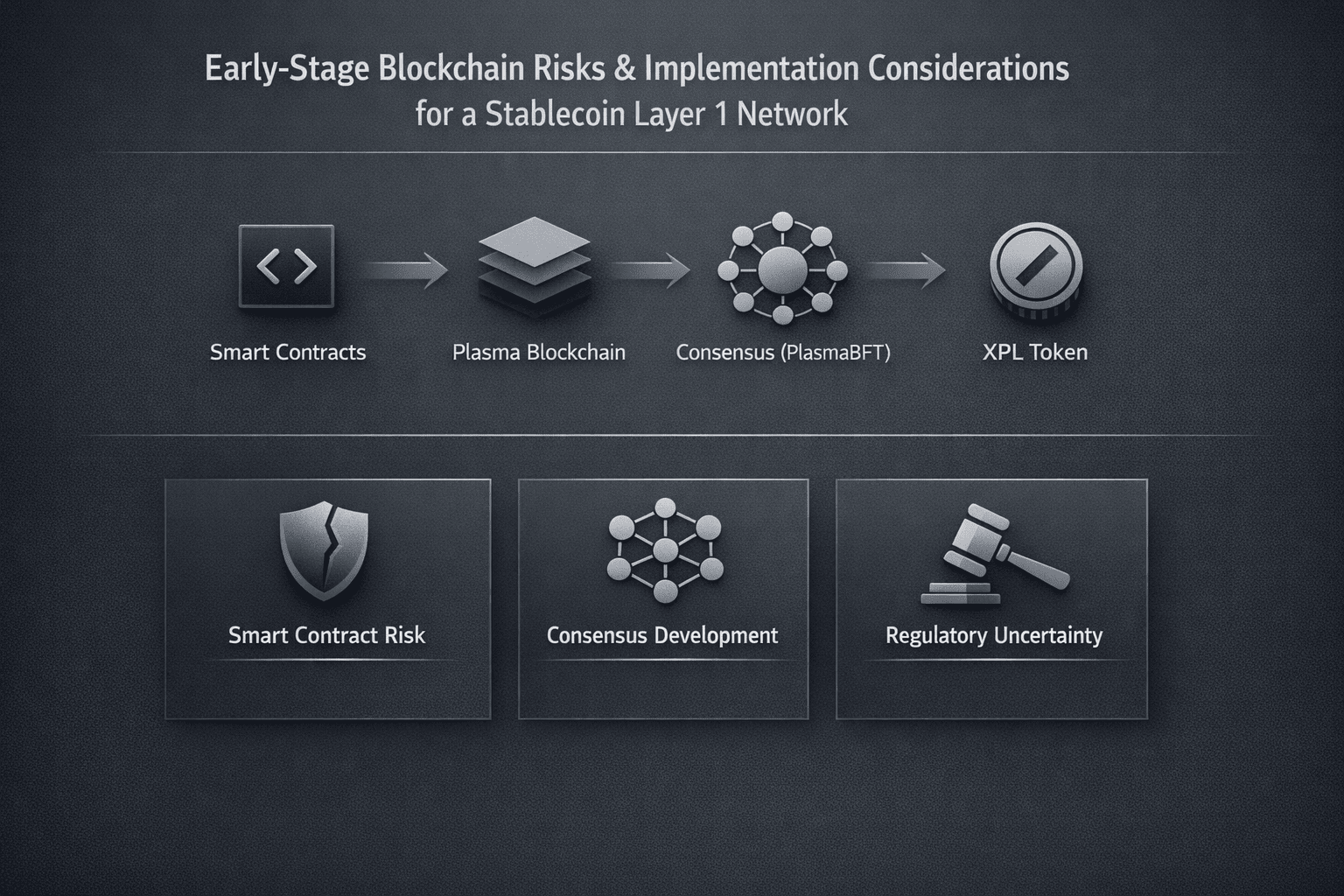 Pentru că token-urile XPL se bazează în întregime pe blockchain-ul Plasma, orice problemă tehnică sau operațională care afectează rețeaua poate afecta, de asemenea, funcționalitatea token-ului. Această dependență strânsă face ca înțelegerea riscurilor la nivel de implementare, a alegerilor de design al consensului, a dinamicii validatorilor și a dependențelor externe de infrastructură, cum ar fi podurile și furnizorii de servicii terți, să fie deosebit de importantă.