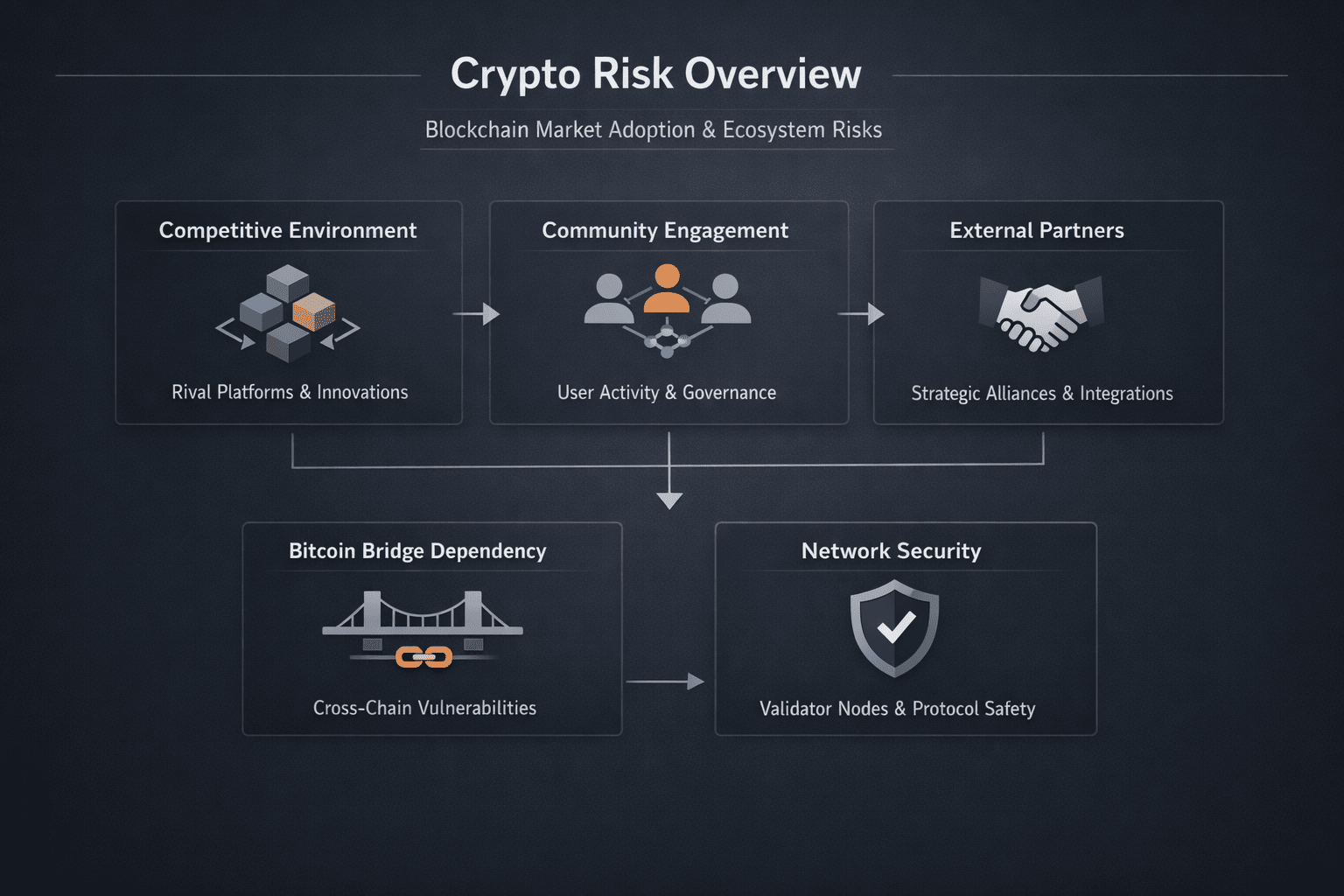 Riscurile de adoptare a pieței se referă la dacă blockchain-ul Plasma și token-ul XPL ating o utilizare semnificativă și susținută în timp. Chiar și tehnologia bine concepută se poate confrunta cu provocări dacă nu câștigă suficientă tracțiune într-un mediu competitiv.
