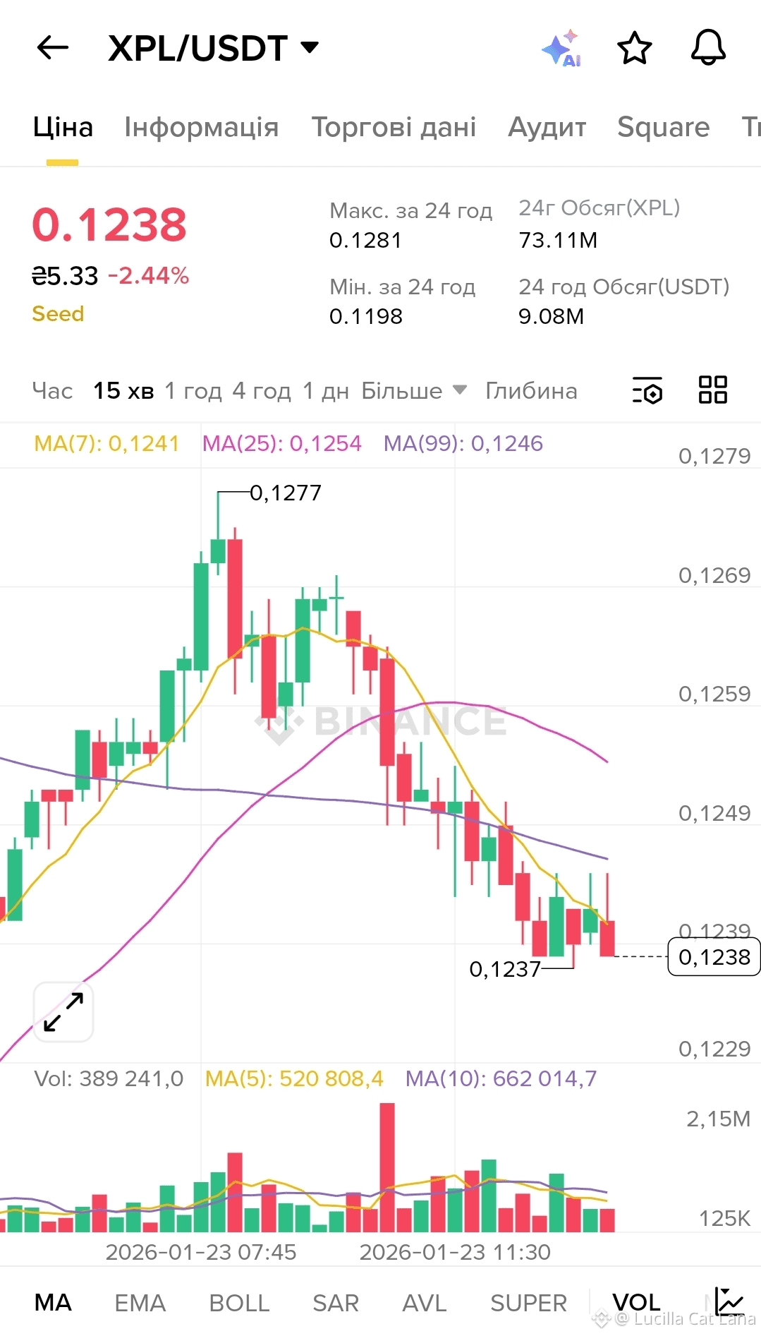 Знаєте, що найбільше дратує в криптоспільноті? Коли всі роблять вигляд, що все гаразд, хоча цифри кричать про зовсім інше. Сьогодні 23 січня 2026 року, я сиджу перед екраном, дивлюся на $XPL з ціною 0.1238 USDT (-2.44%), і розумію – через два дні станеться те, про що багато хто воліє мовчати. Анлок. Той самий страшний анлок, який може або підтвердити віру в проєкт, або остаточно зламати її.