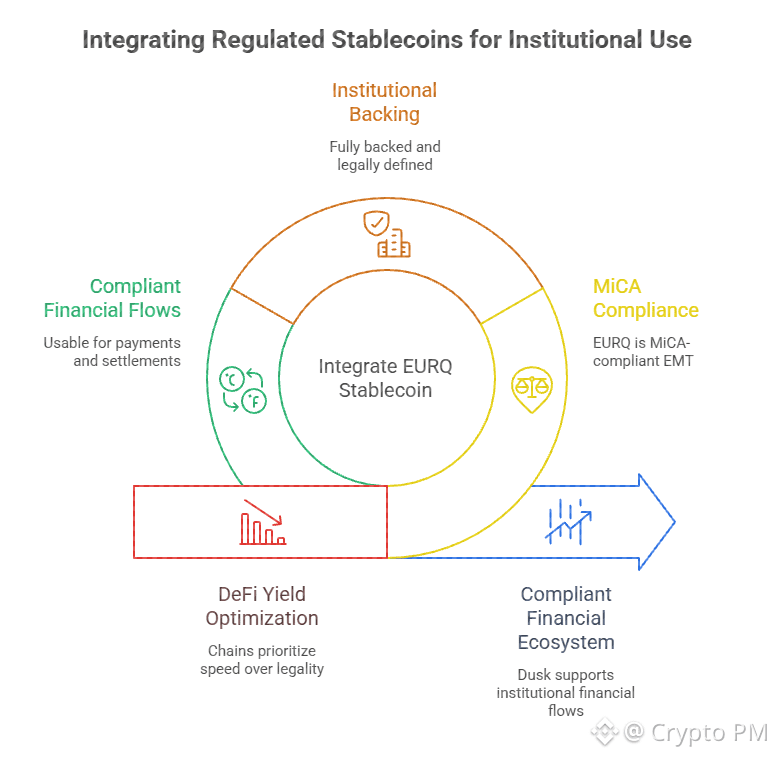 EMTs are not like typical stablecoins. They are legally defined, strictly regulated, fully backed, and designed for institutional use. Supporting EURQ makes Dusk usable for payments, settlements, and collateral inside compliant financial flows.