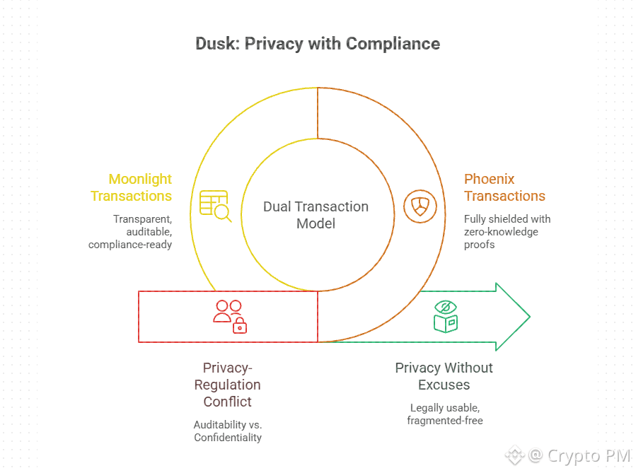 Same chain. Same liquidity. Different privacy levels depending on use case. This avoids fragmentation while staying legally usable.