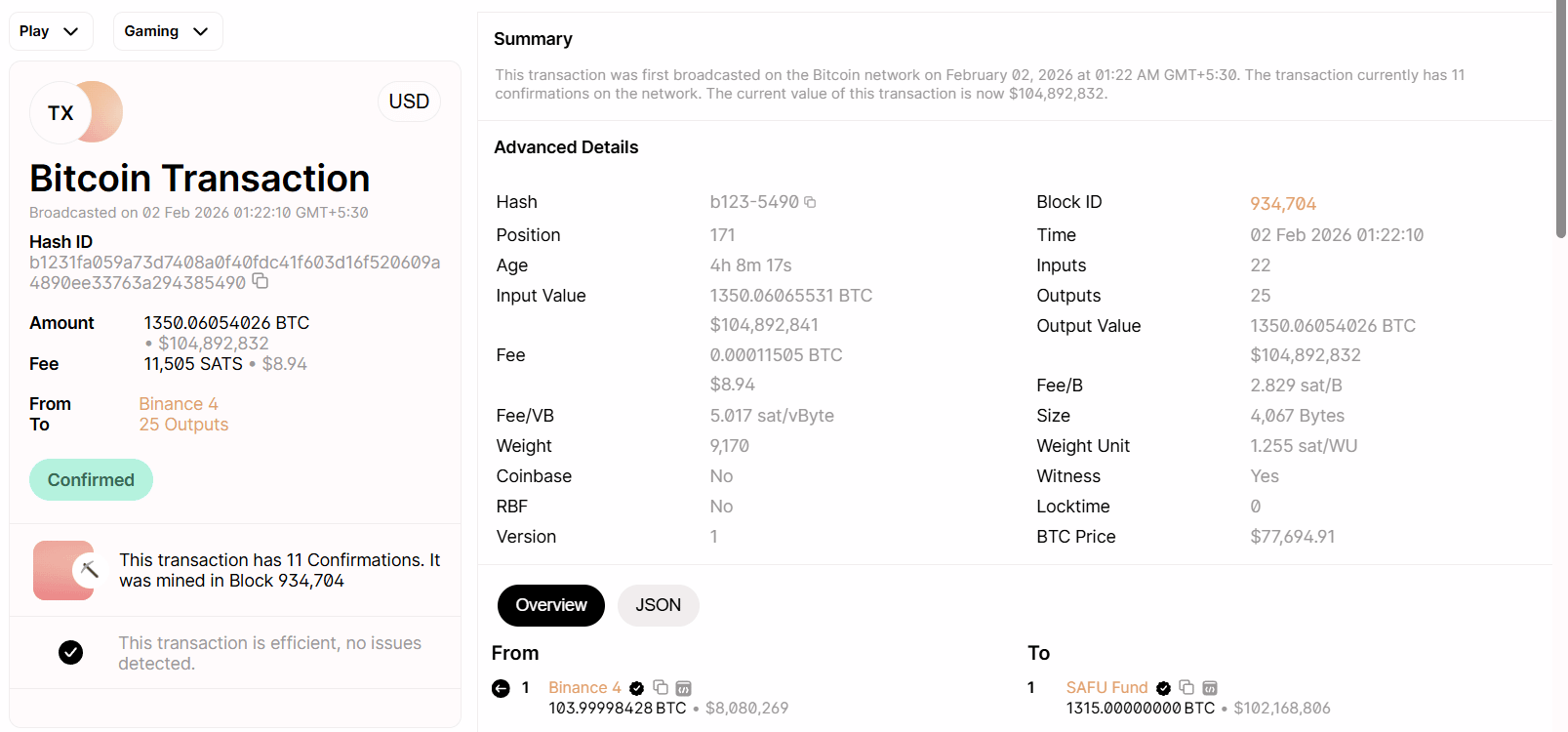 Conversia de 100 de milioane de dolari în Bitcoin pentru SAFU de la Binance este acum complet verificată pe lanț, subliniind atât transparența cât și execuția. Pe măsură ce conversiile rămase se desfășoară, comunitatea cripto va urmări îndeaproape—nu doar pentru impactul pe piață, ci pentru ceea ce reprezintă această mișcare în termeni de încredere instituțională și strategie pe termen lung în perspectiva anului 2026.