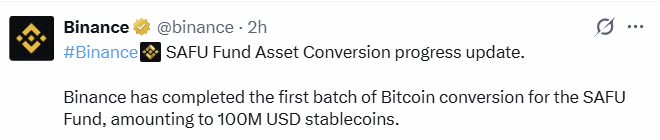 Pe 30 ianuarie 2026, Binance a anunțat planuri de a converti complet fondul SAFU în Bitcoin pe o perioadă de 30 de zile, citând rolul Bitcoin ca o acoperire pe termen lung, reziliența sa și statutul său în creștere ca un activ de rezervă de bază în ecosistemul cripto.