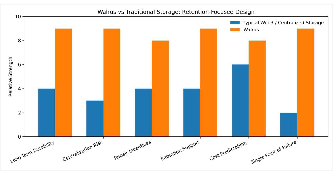 Walrus pariază că cel mai valoros semnal nu este excitația, ci consistența. Dacă datele se încarcă fiabil luni după încărcare, utilizatorii încetează să mai gândească despre stocare în întregime. Atunci retenția se compune.