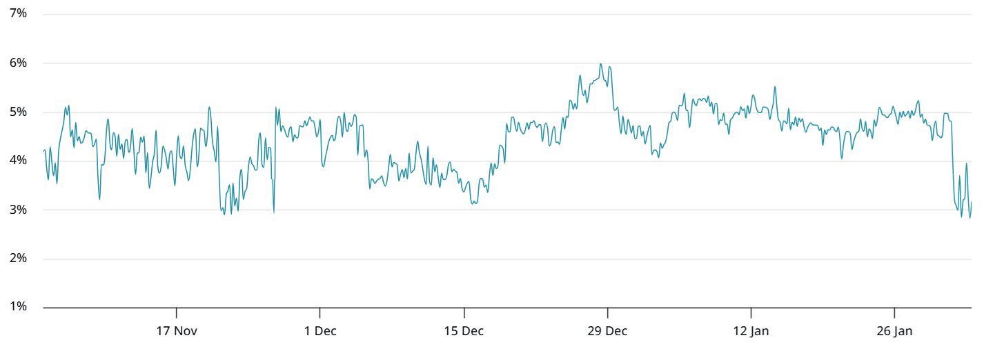 Îngrijorările traderilor au crescut după ce fondurile ETF Bitcoin spot au înregistrat 3,2 miliarde USD flux de capital net retras începând cu 16/1. Cu toate acestea, acest număr reprezintă mai puțin de 3% din totalul activelor gestionate. Compania Strategy (MSTR) a fost, de asemenea, afectată de zvonuri nefondate când acțiunile lor s-au tranzacționat sub valoarea netă a activelor (NAV), stârnind îngrijorări că compania ar putea vinde o parte din Bitcoin-ul pe care îl deține.