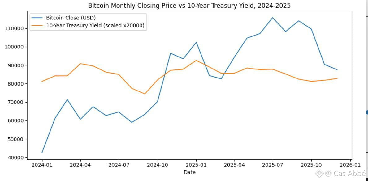 Information: Bitcoin and 10-year Treasury yields (2024-2025)