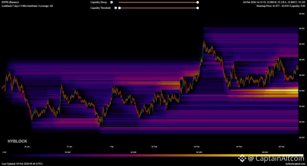 If the HYPE price loses $32.5 cleanly, the chart shows a pretty open runway down toward $28. Moves like that don’t usually happen slowly, liquidation cascades can send price dropping in a hurry.