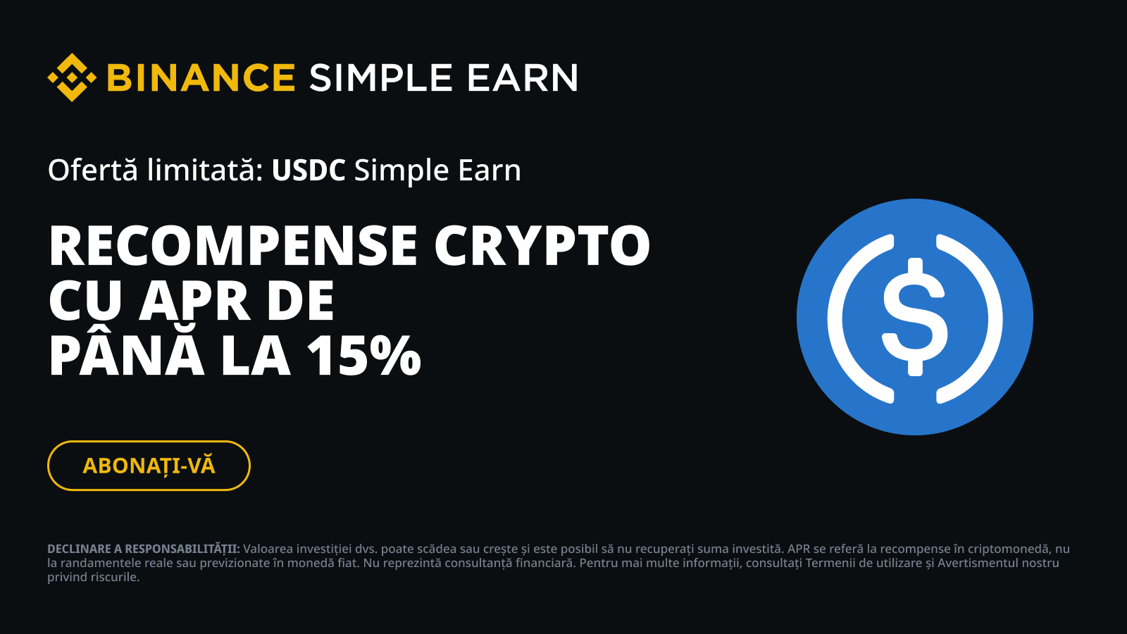 Binance Simple Earn a lansat două promoții pentru Produsele USDC Simple Earn blocate și flexibile! În perioada promoției, utilizatorii care se abonează la produsele menționate mai sus sunt eligibili să beneficieze de rate APR promoționale de până la 15%.