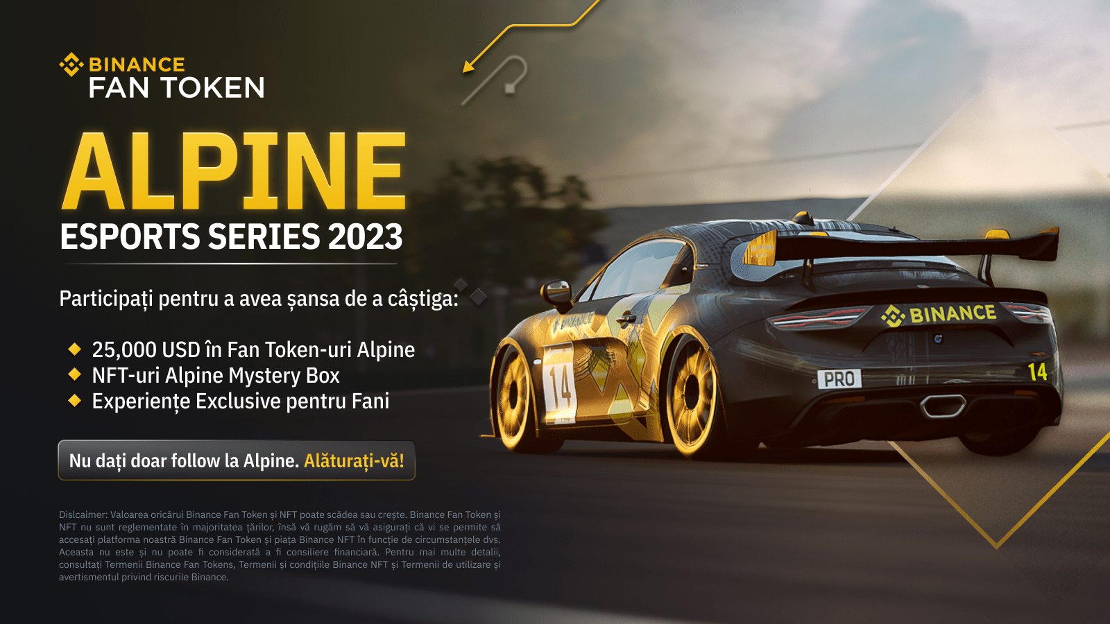 Campionatul Alpine Esports Series 2023 s-a întors! Începând cu 27.04.2023, 35 de piloți din zece țări vor concura în jocul Assetto Corsa Competizione pentru o cotă din fondul de premii în valoare de 60.000 USD în recompense ALPINE, sponsorizat de platforma Tokenuri Binance pentru fani.