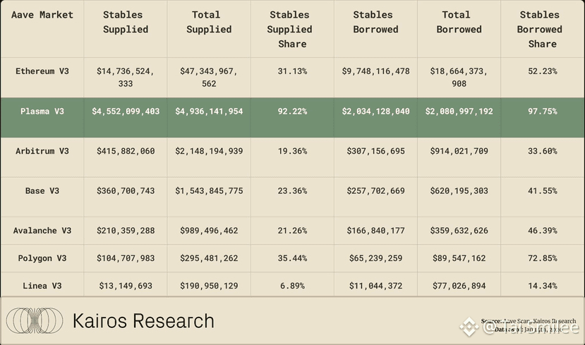 On Plasma V3, over 92% of supplied assets are stablecoins, and an even more striking 97.75% of borrowed assets are stables. That’s not a coincidence, and it’s not speculative behavior.