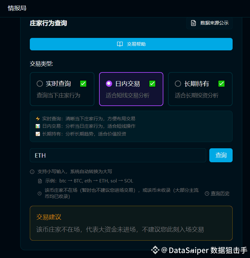 情报局分析:“庄家不在场”= 大资金未进场,交易建议 “不建议入场”—— 当前行情由散户主导,涨跌全靠情绪,操作无持续性逻辑。